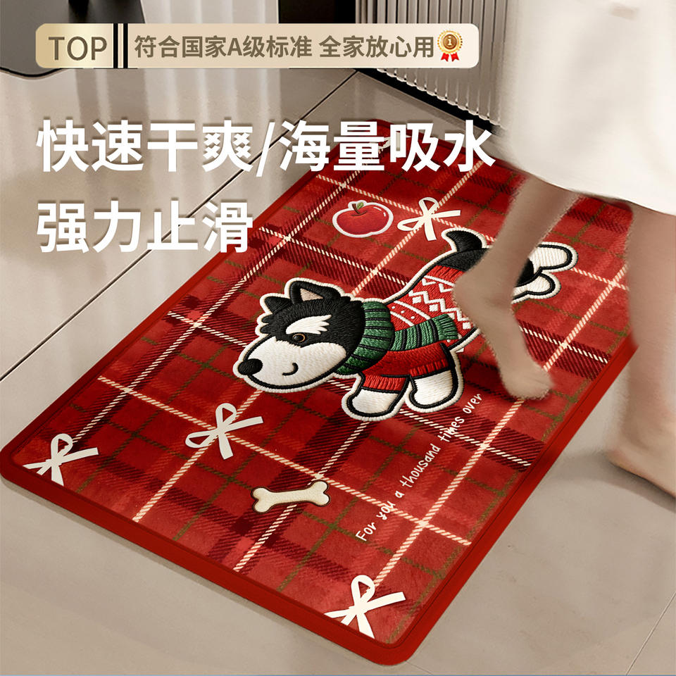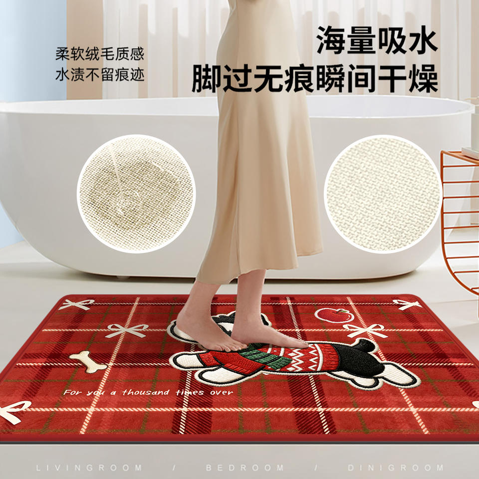 Tapis de salle de bain rectangulaire en imitation lin, absorbant et antidérapant, pour l'entrée des toilettes, beige, motif chiot pompon