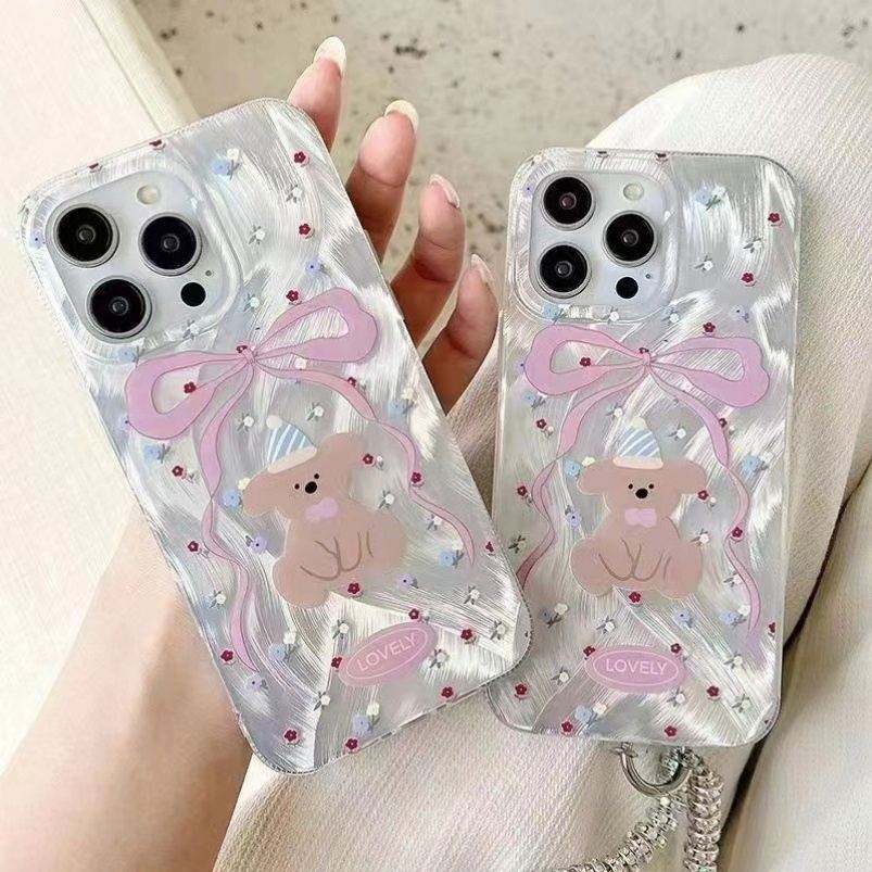 Cartoon Bear Bow Tie Mobile Phone Case for IPhone 16 15 14 13 12 11 Pro Max Plus Hot Sale Cute Shockproof Cute Phone Cover