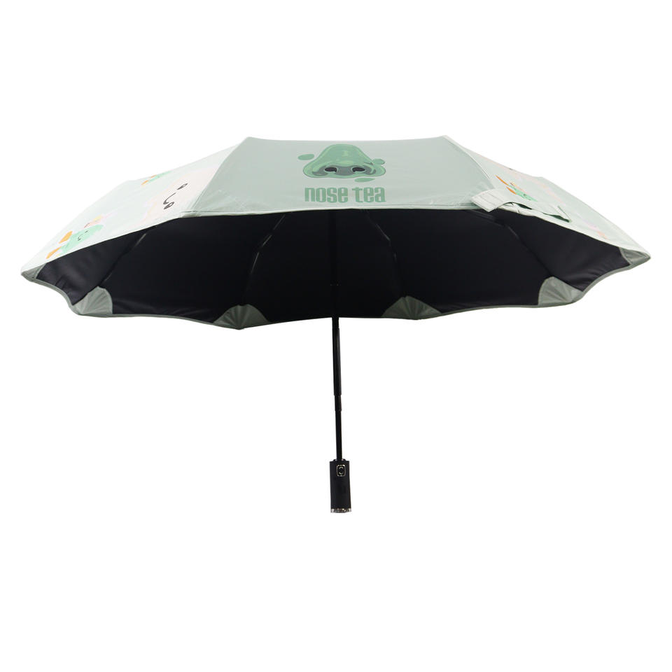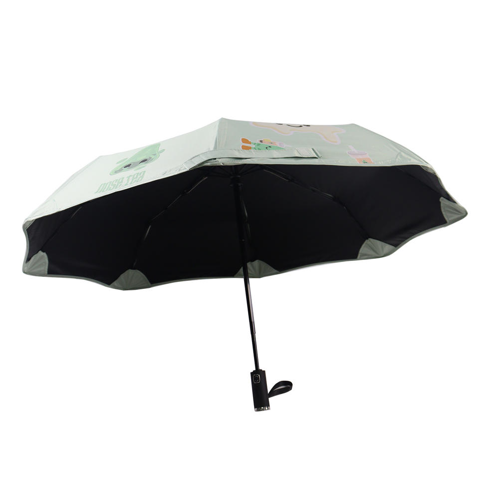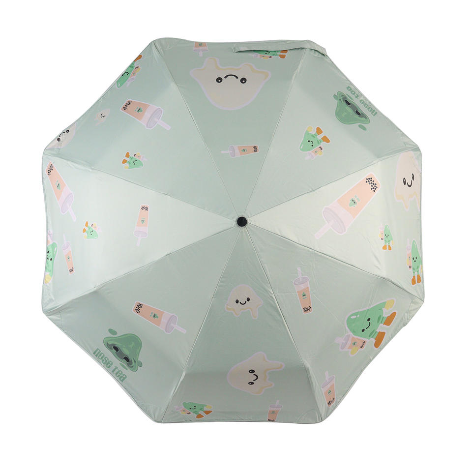 Parapluie pliant Boba Tea Cartoon | Double usage pour la pluie et le soleil, bords arrondis sécurisés, revêtement noir anti-UV