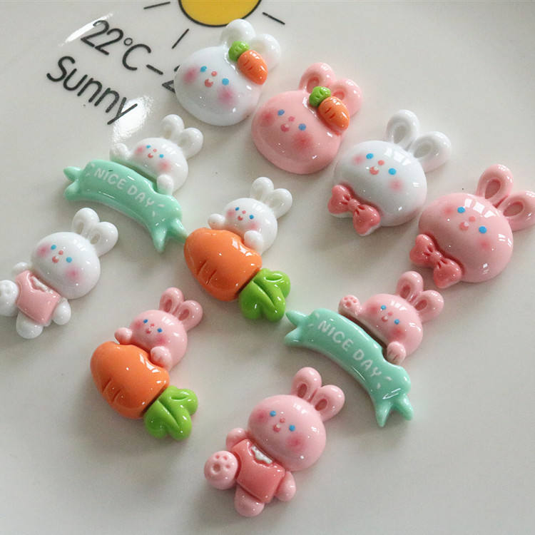 Dessin animé visage lumineux radis lapin mignon bricolage maison coque de téléphone couvre-chef accessoires Est 4 perles breloques en résine plastique