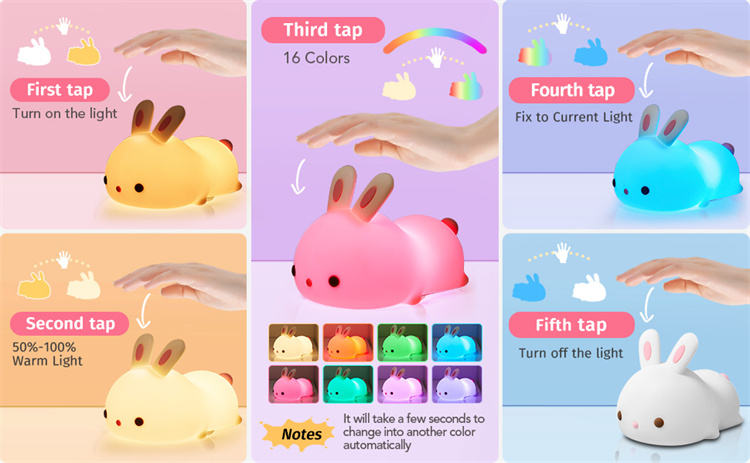 Lampe en silicone lapin de dessin animé, veilleuse lapin mignon, lampe lapin à grande tête rechargeable pour chambre à coucher, veilleuse à tapoter pour le sommeil