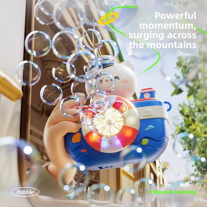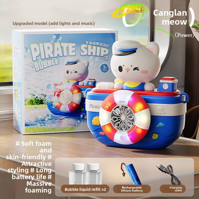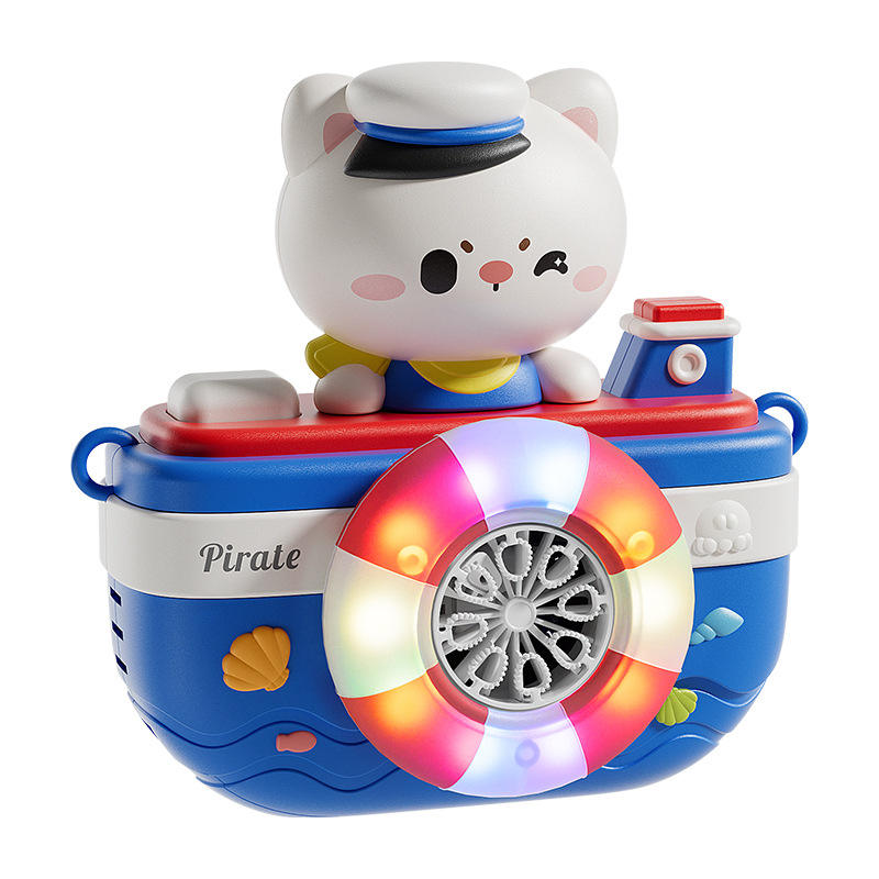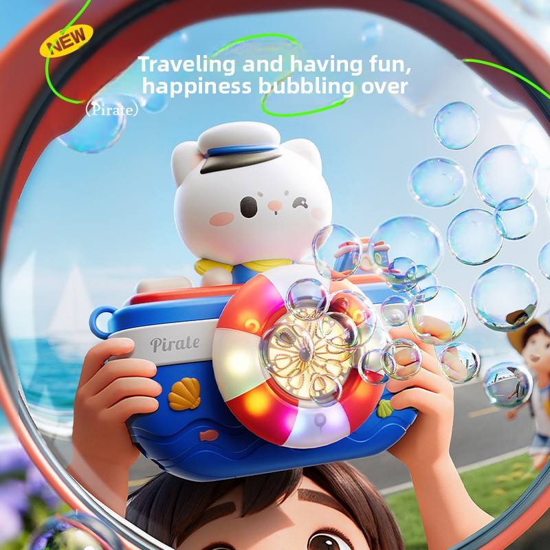 Pistolet à bulles électrique portable pour enfants, design pirate dessin animé, rechargeable, unisexe, entièrement automatique, à émission multi-trous