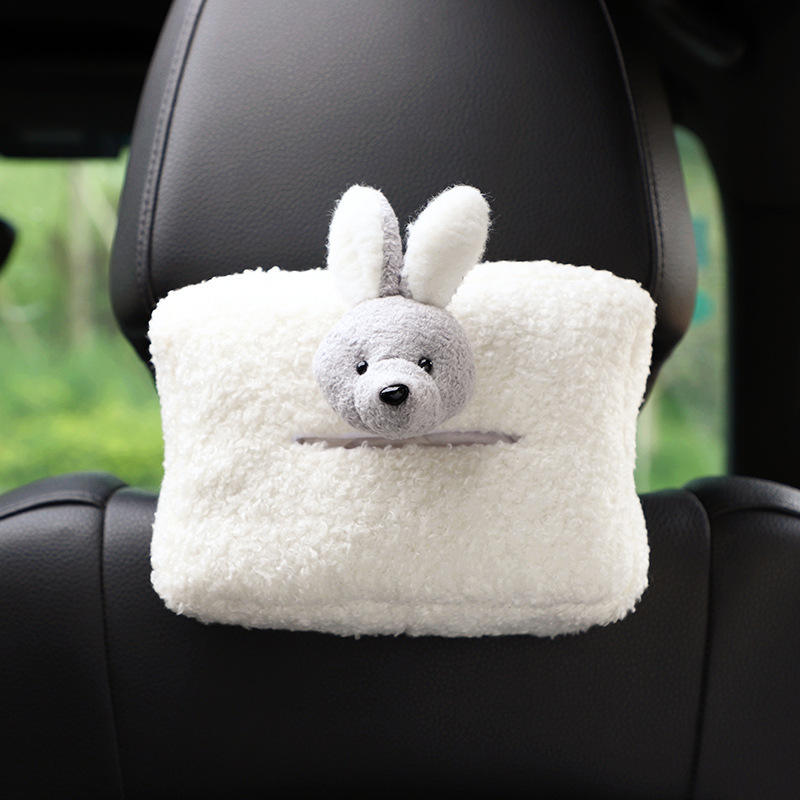 Boîte à mouchoirs pour voiture de dessin animé mignon lapin laine d'agneau boîte à mouchoirs suspendue pour voiture fournitures intérieures multifonctionnelles pour voiture