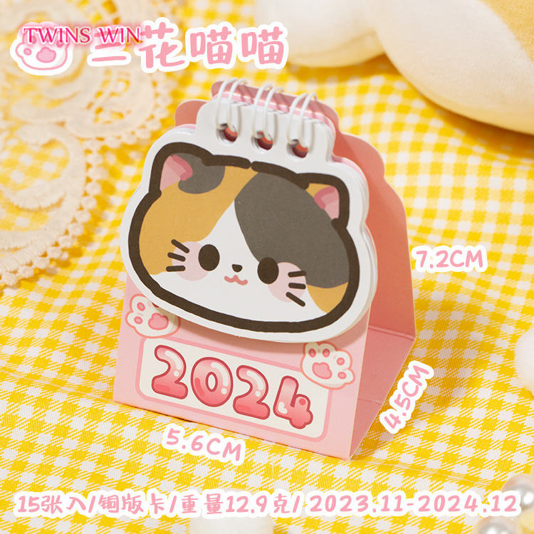 Dessin animé chat haricot bureau calendrier Mini calendrier lunaire Table décoration petit cadeau 452