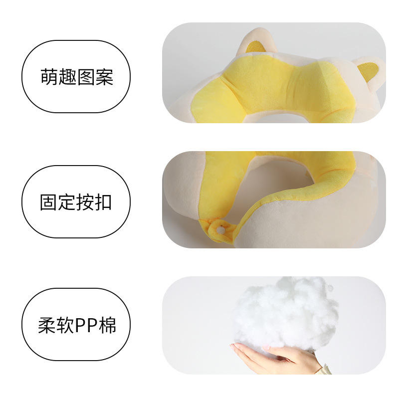 Oreiller de voyage en forme de U avec oreilles de chat de dessin animé, support portable pour la sieste au bureau et l'utilisation en avion, bleu, rose, gris, vert, jaune