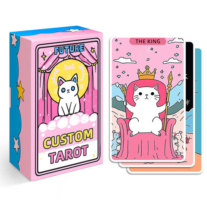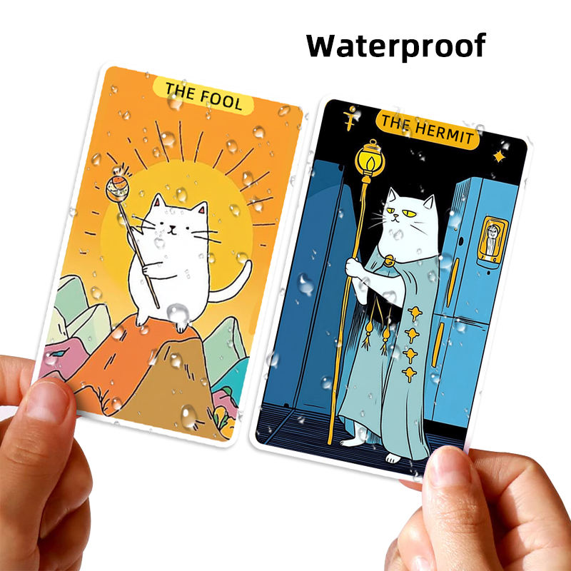 Fabricant de cartes de tarot, jeu de tarot personnalisable avec chat mignon, estampage à chaud en feuille d'argent, bords dorés, impression sur papier écologique
