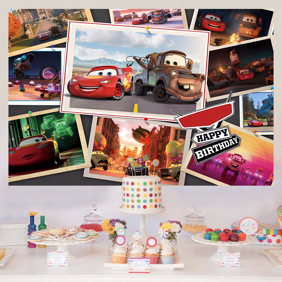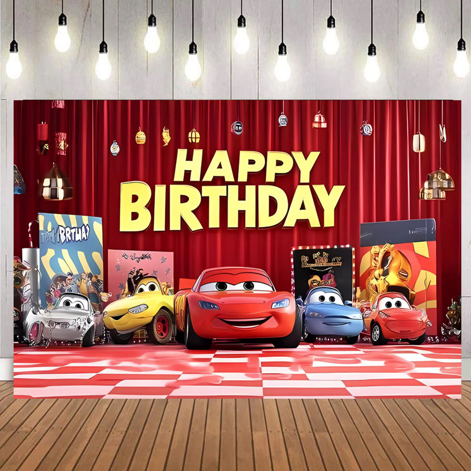 Personnage de dessin animé bannière toile de fond voiture de course thème toile de fond pour garçons décorations de fête d'anniversaire joyeux