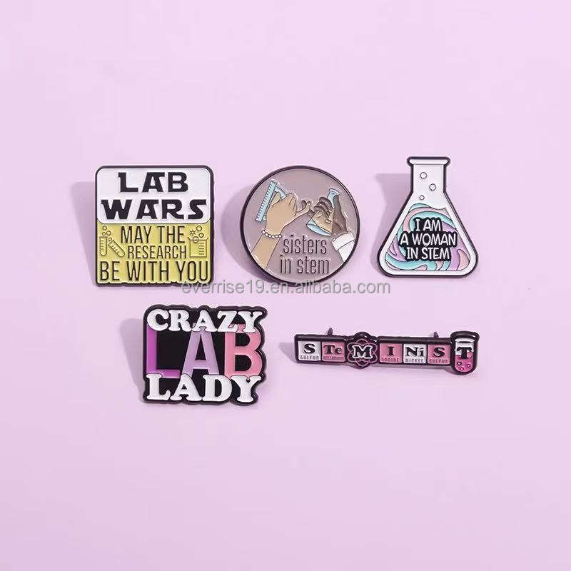 Broche en alliage de molécule chimique de dessin animé Fun Science Lab Beaker Metal Craft Pin pour tenue polyvalente Angel Cross Fashion