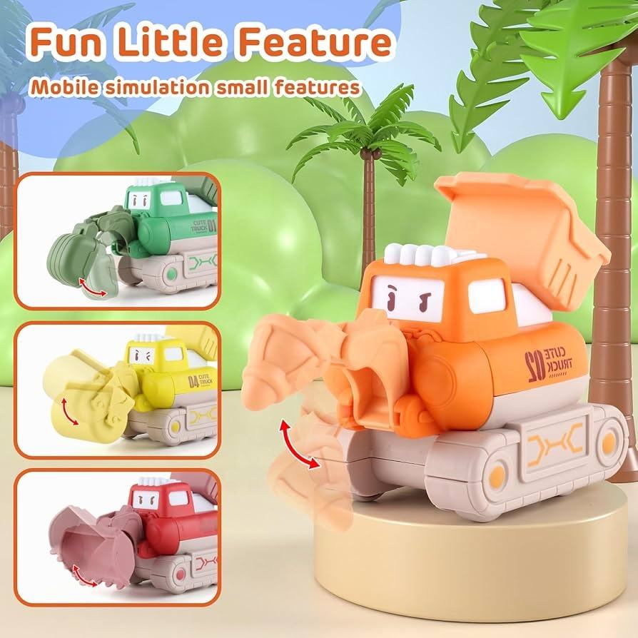 Nom du produit : jouet de véhicule à presser et à emporter.:Lot de 4 mini camions de chantier à pousser pour bébé.