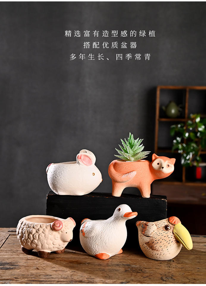 Pots à succulentes en céramique créatifs en forme d'animaux de dessin animé, pots en terre cuite spéciaux pour la maison, contrôle des racines, vente en gros à prix réduit
