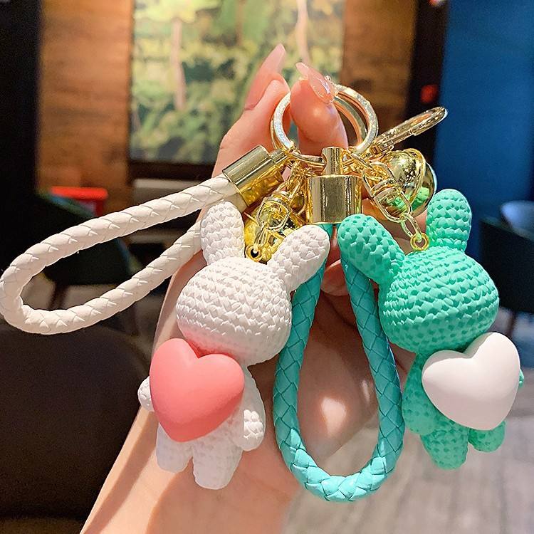 Porte-clés Lapin Amour en Résine Métallique Mignon de Dessin Animé, Série Animaux, Accessoire de Sac, Vente en Gros, Pendentif pour Sac à Main et Voiture