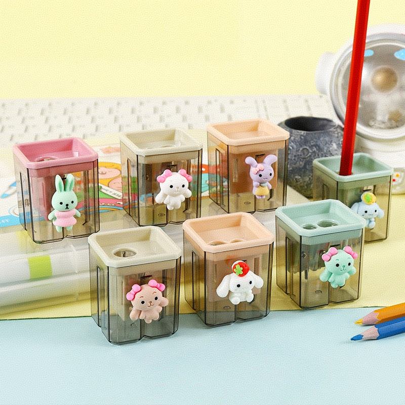 Taille-crayons mignons en forme de lapin de dessin animé, taille-crayons miniatures portables à deux trous pour étudiants