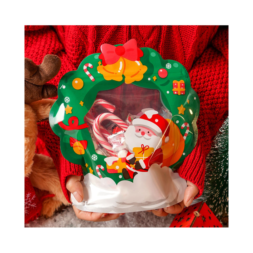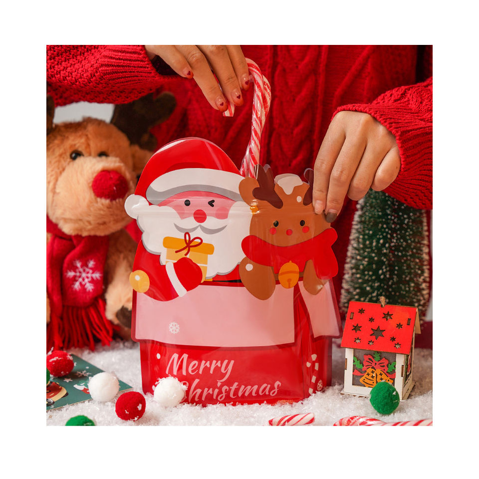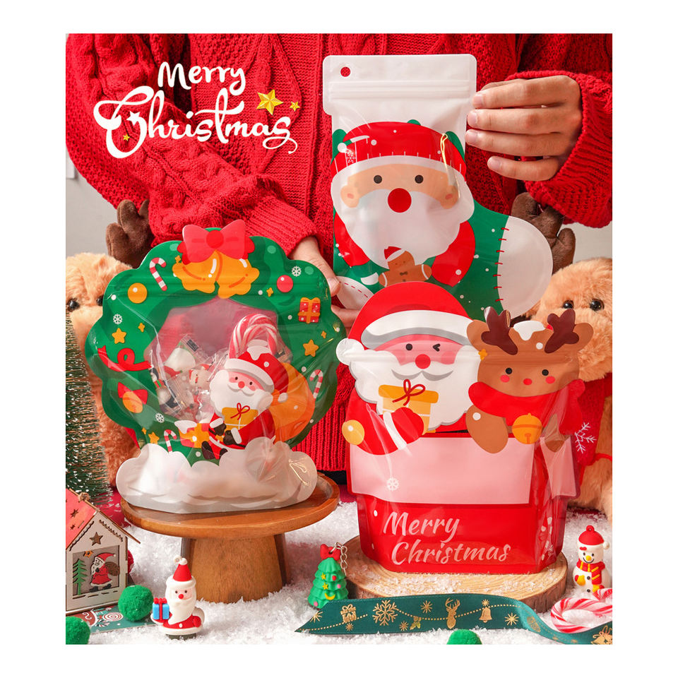 Dessin animé mignon sac en plastique auto-scellant emballage cadeau de Noël pour biscuits, bonbons et collations