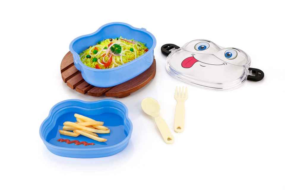 Boîte à lunch design cartoon avec cuillère, en plastique PP, bento avec poignée pour enfant, 1L