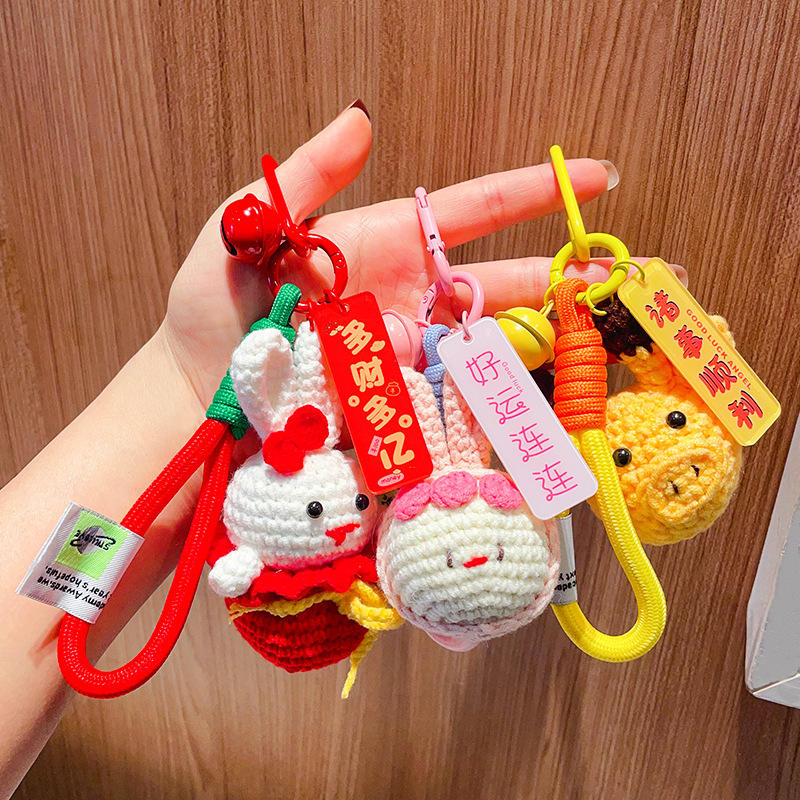 Porte-clés pendentif poupée de dessin animé au crochet, mignonne, cadeau pour couple, idéal pour sac à dos, cadeaux pour filles