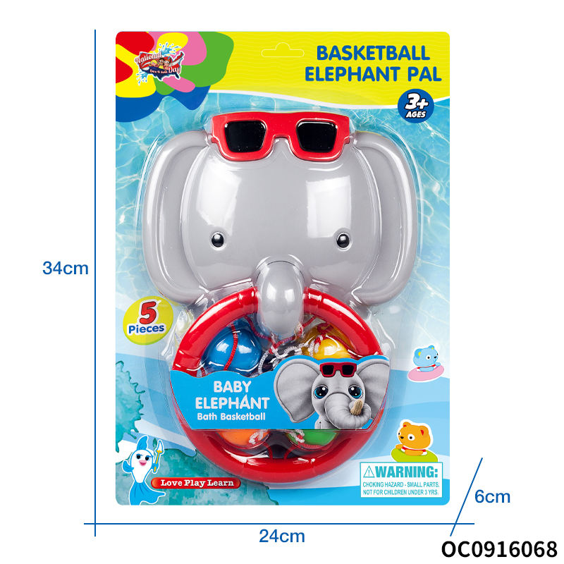 Conception d'éléphant de dessin animé jouer à des jeux d'eau mini panier de basket portable ensemble de jouets de bain pour bébé avec des jouets océaniques en plastique pvc