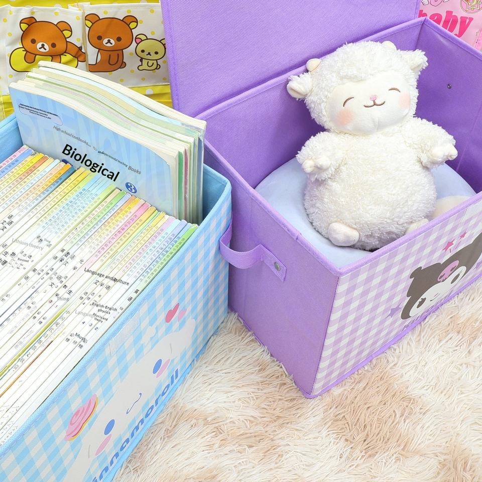 Boîte de rangement pliable et portable en tissu imprimé motif dessin animé pour livres, collations, vêtements, jouets, idéale pour dortoir et voiture