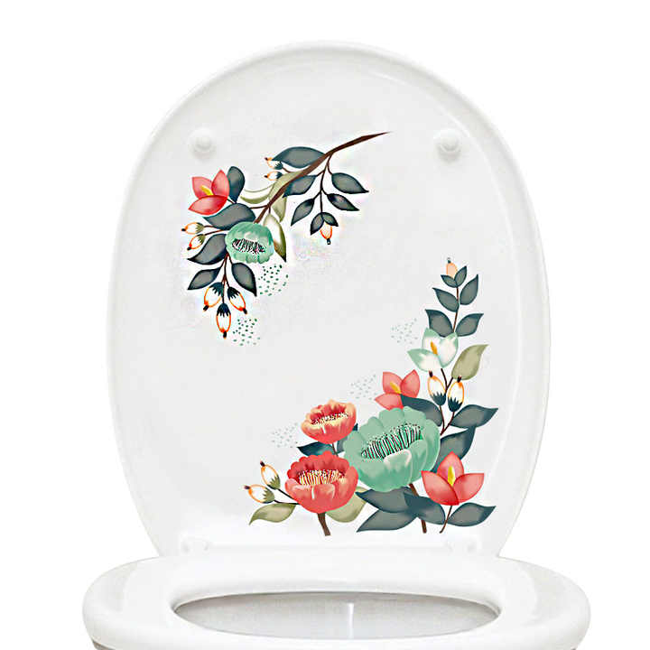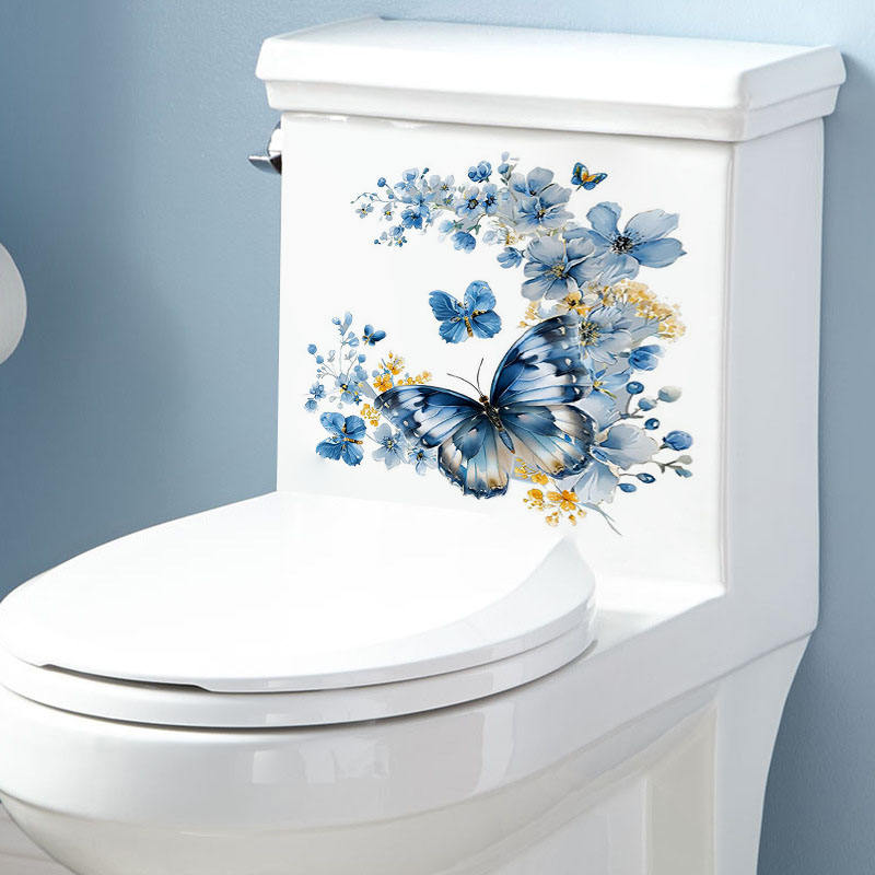 Dessin animé fleur papillon Rose plante verte toilette autocollant salle de bain décoration papier peint auto-adhésif PVC sticker mural