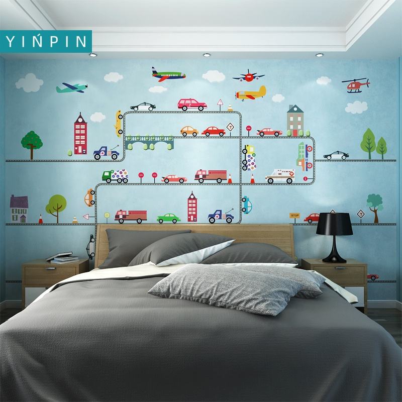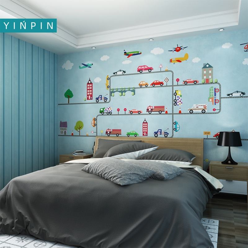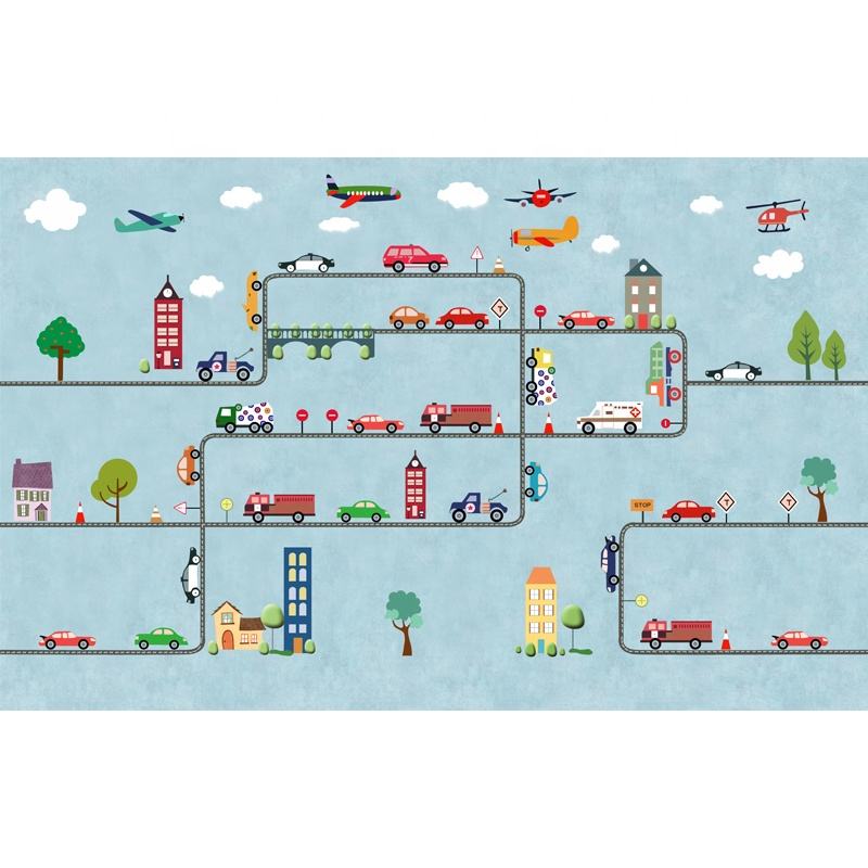 Papier peint mural 3D de voitures amusantes de dessin animé pour la chambre des enfants décorative
