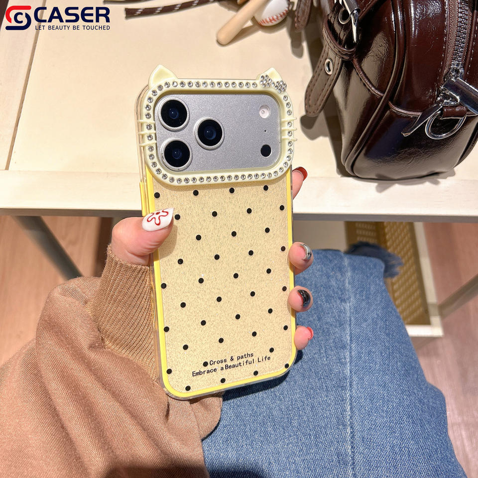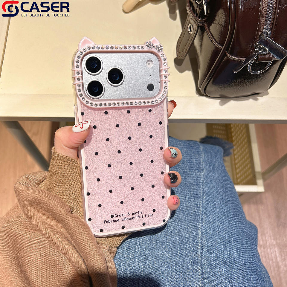 Dessin animé paillettes à pois 2 In1 coque de téléphone pour Iphone11promax 12 13 mignon diamants KT chat caméra cadre étuis pour 17promax