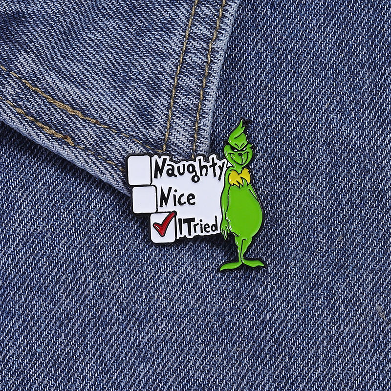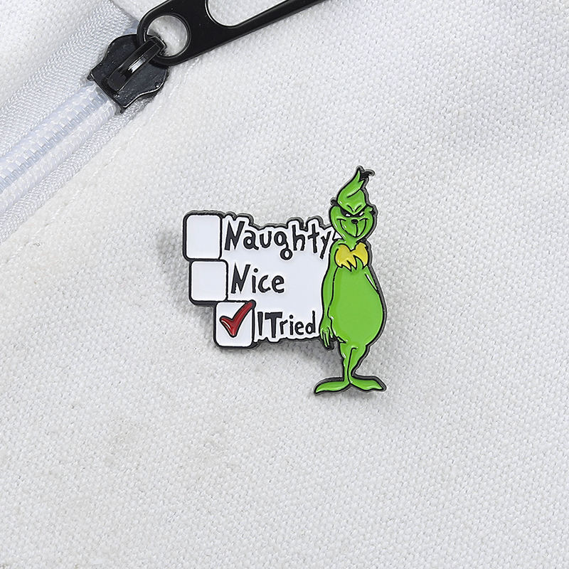 Épingles en émail monstre vert dessin animé personnalisé coquin, joli, essayé personnages de films d'animaux mignons insignes de revers bijoux cadeaux pour les enfants