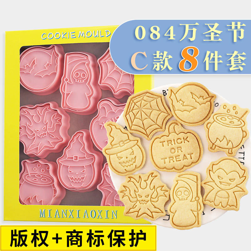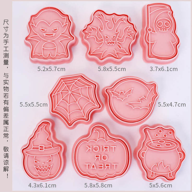Emporte-pièces à biscuits d'Halloween en forme de dessin animé, style C, lot de 8, emporte-pièces à biscuits citrouille et vampire, outils de pâtisserie pour gâteaux en pâte d'amande