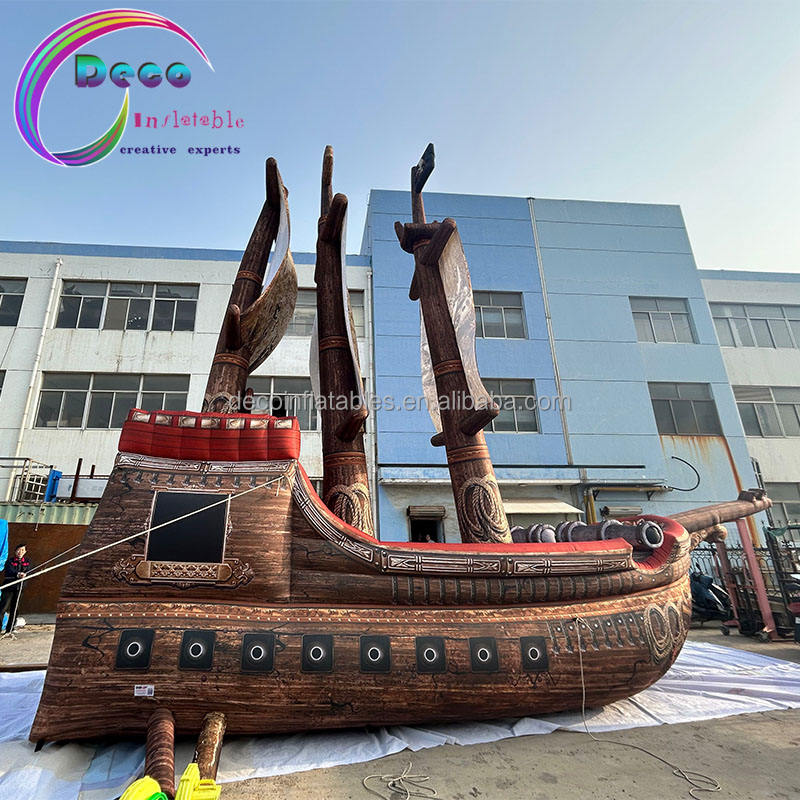 Modèle de bateau pirate gonflable de dessin animé avec voile pour les promotions d'événements et la publicité L'impression numérique comprend un accessoire de ventilateur