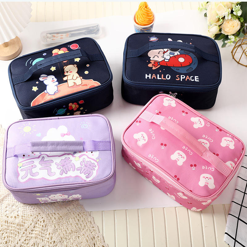 Sac à bento isolé de dessin animé Les étudiants apportent une boîte à lunch Sac fourre-tout Sac à lunch rectangulaire en aluminium