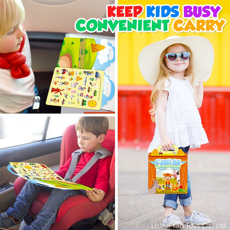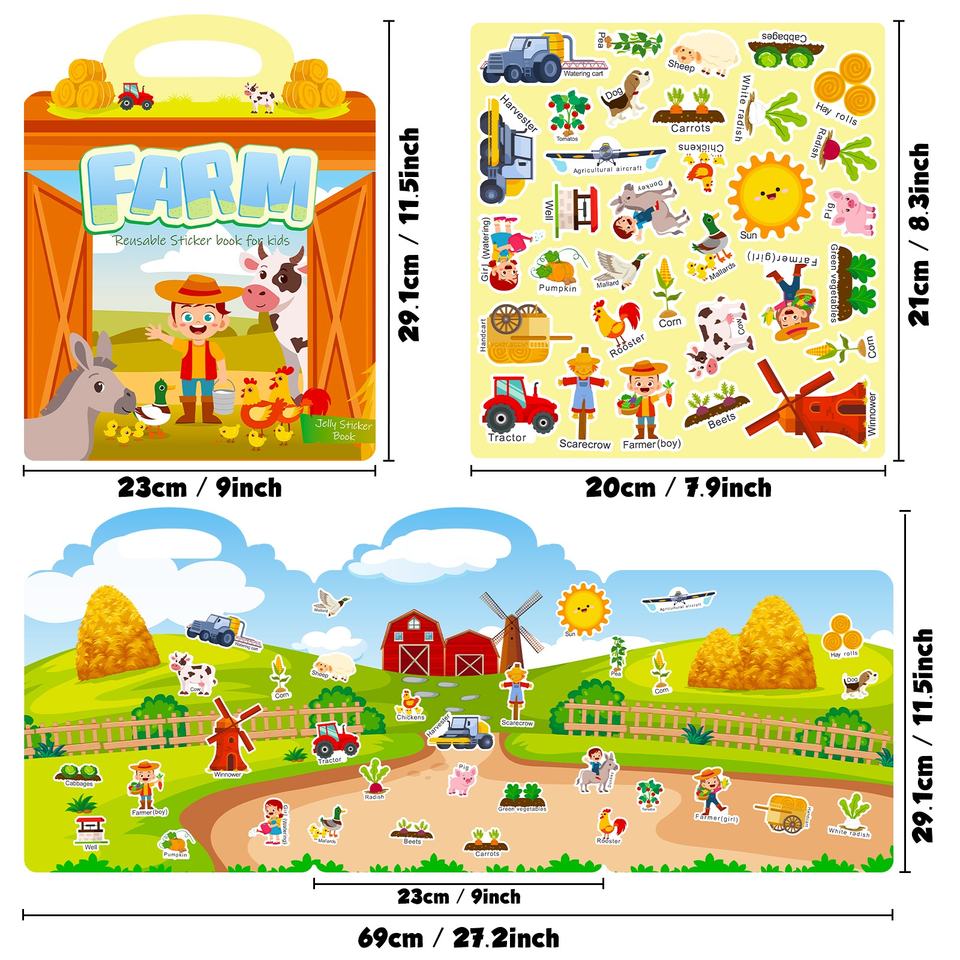 Autocollants statiques imperméables pour enfants, animaux de la ferme, livres d'activités de jeu d'association pour tout-petits, filles, garçons, enfants d'âge préscolaire