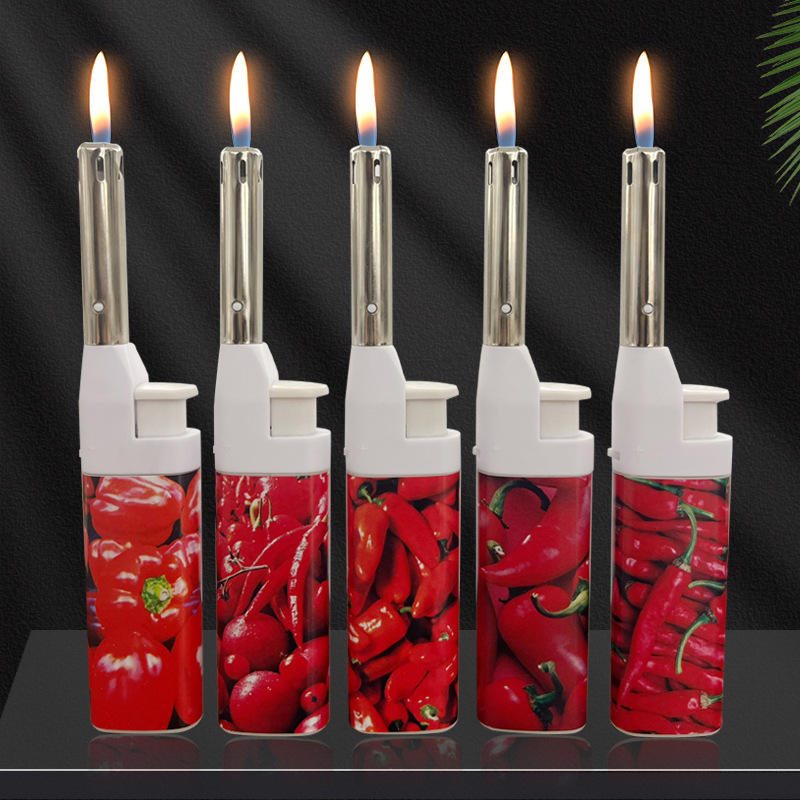 Briquet à gaz rechargeable à flamme jet, briquet de cuisine en plastique de dessin animé, briquet de voyage, briquet de barbecue