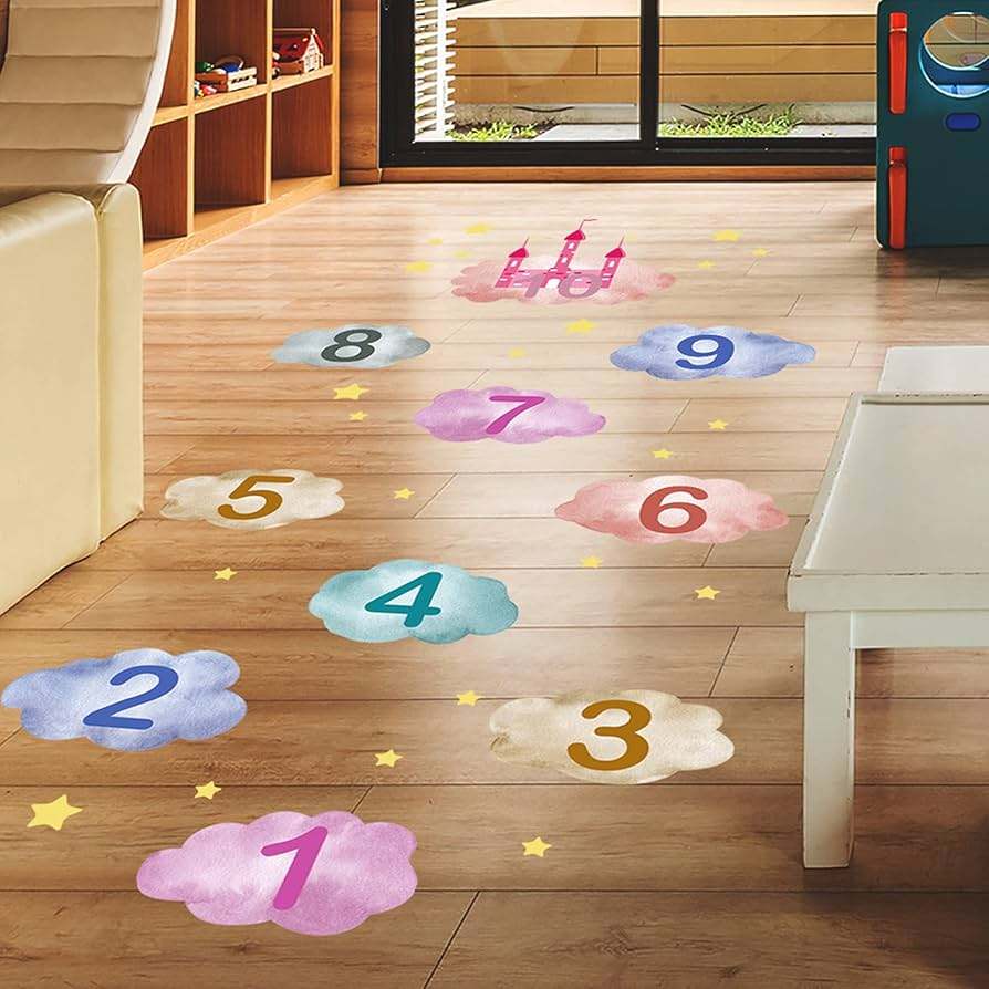 Dessin animé treillis sol décalcomanie numérique cerveau Puzzle jeux cuisine salle sol décor numéro marelle empreinte sol autocollant