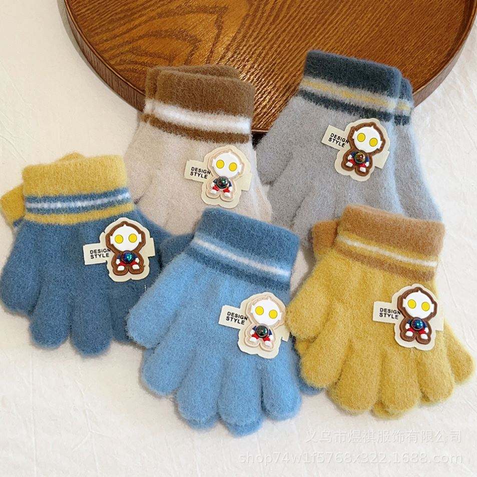 Gants chauds en laine tricotés pour petit garçon, protection contre le froid, anti-gel, pour le cyclisme en plein air, l'écriture, cinq doigts