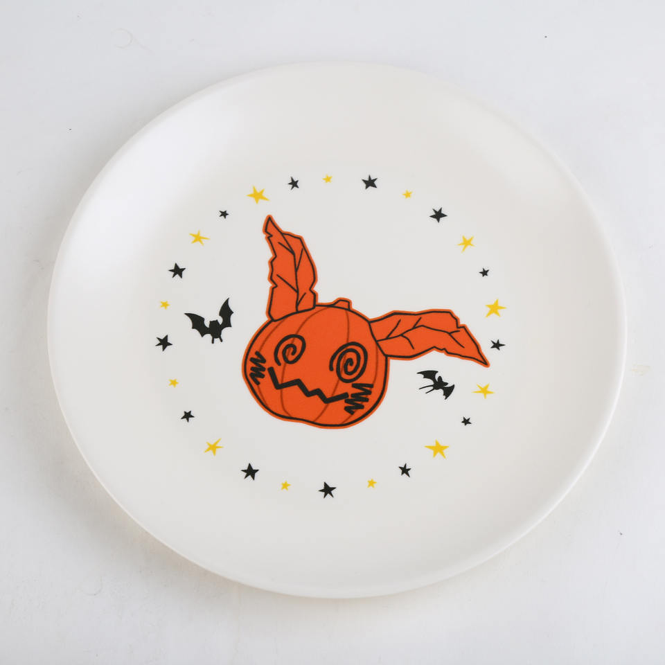 Assiette à dîner en mélamine de dessin animé, ronde, réutilisable, pour enfants, vaisselle sûre en plastique avec motif Halloween, marque Kind