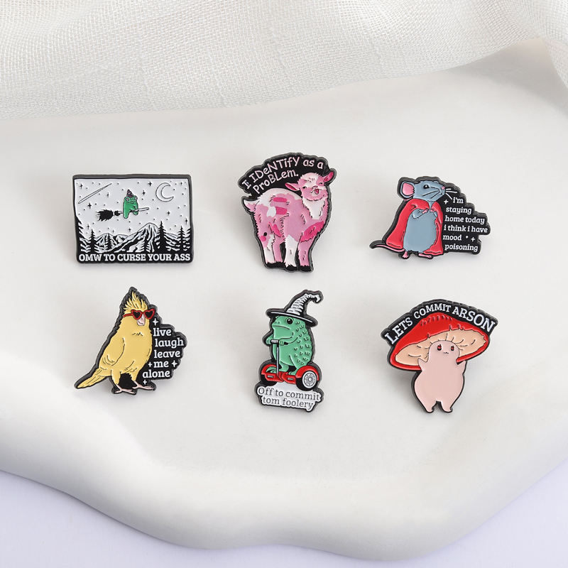 Dessin animé souris grenouille mouton animaux citations broche émail broches Omw pour maudire votre cul sorcière grenouille broches revers Badge drôle cadeau broches