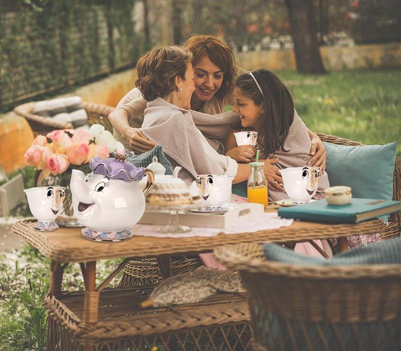 Cartoon New Beauty And The Beast Teapot Mug Mrs Potts Chip Tea Pot Cup One Set Lovely & One Teapot and Four Chip Mug