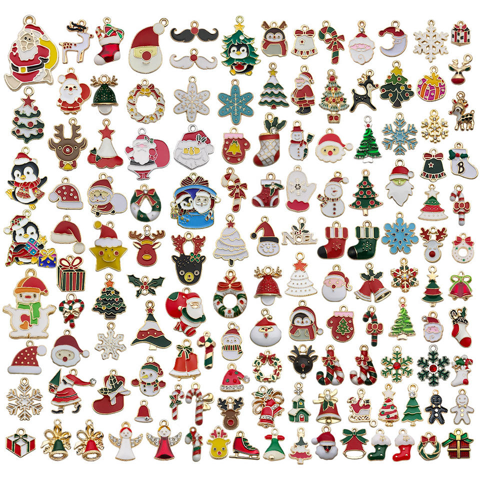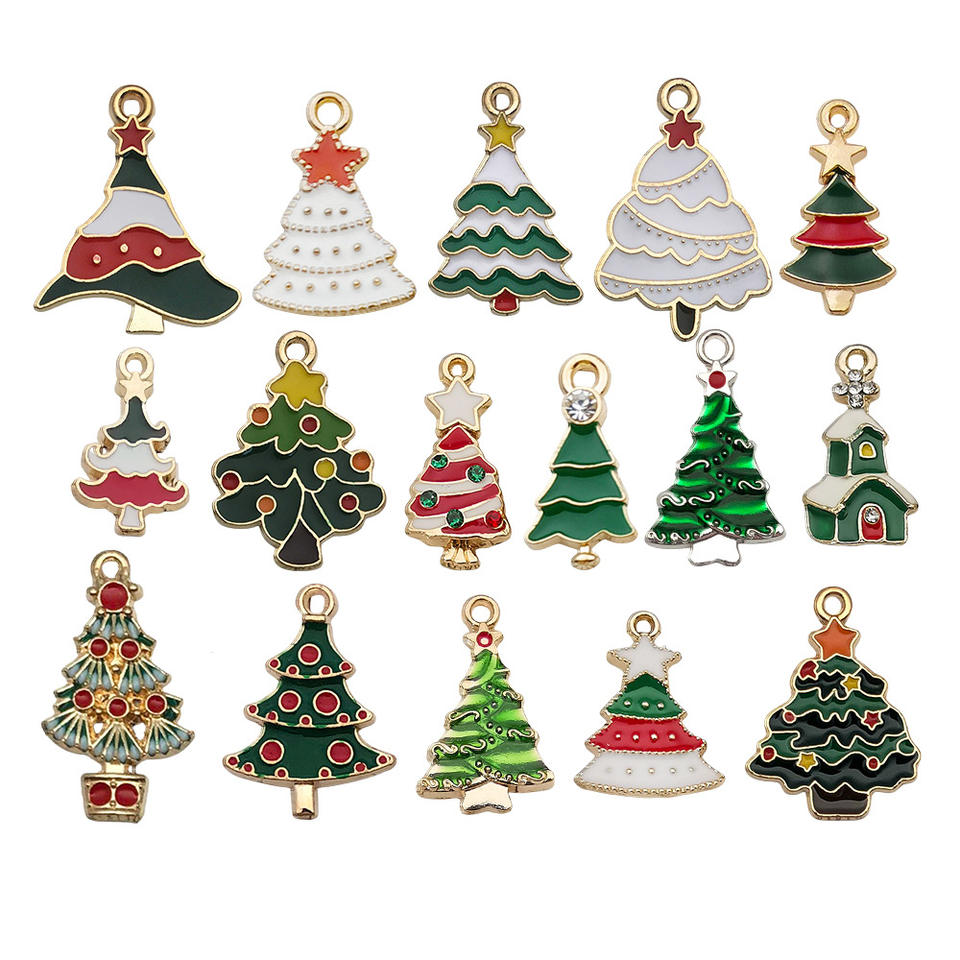 Dessin animé huile goutte à goutte alliage Santa Elk arbre flocon de neige bricolage boucles d'oreilles Bracelet pendentif accessoires