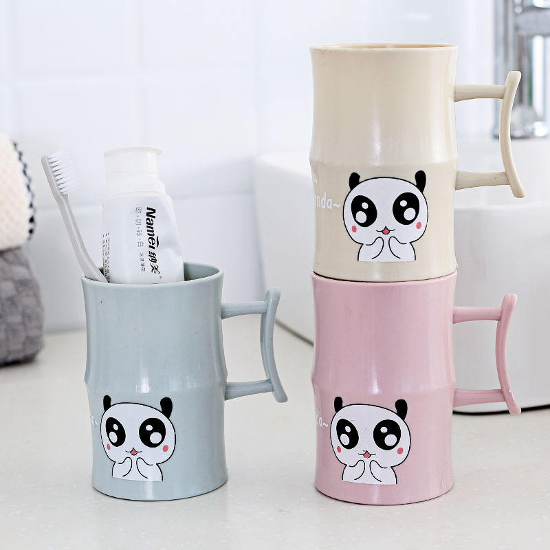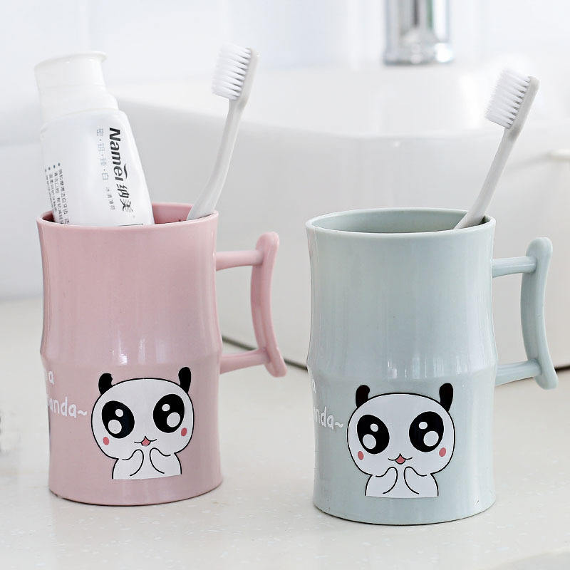 Gobelet à brosse à dents Panda de dessin animé pour enfants et couples avec poignée, usage domestique, matériau PP, design aux couleurs nordiques