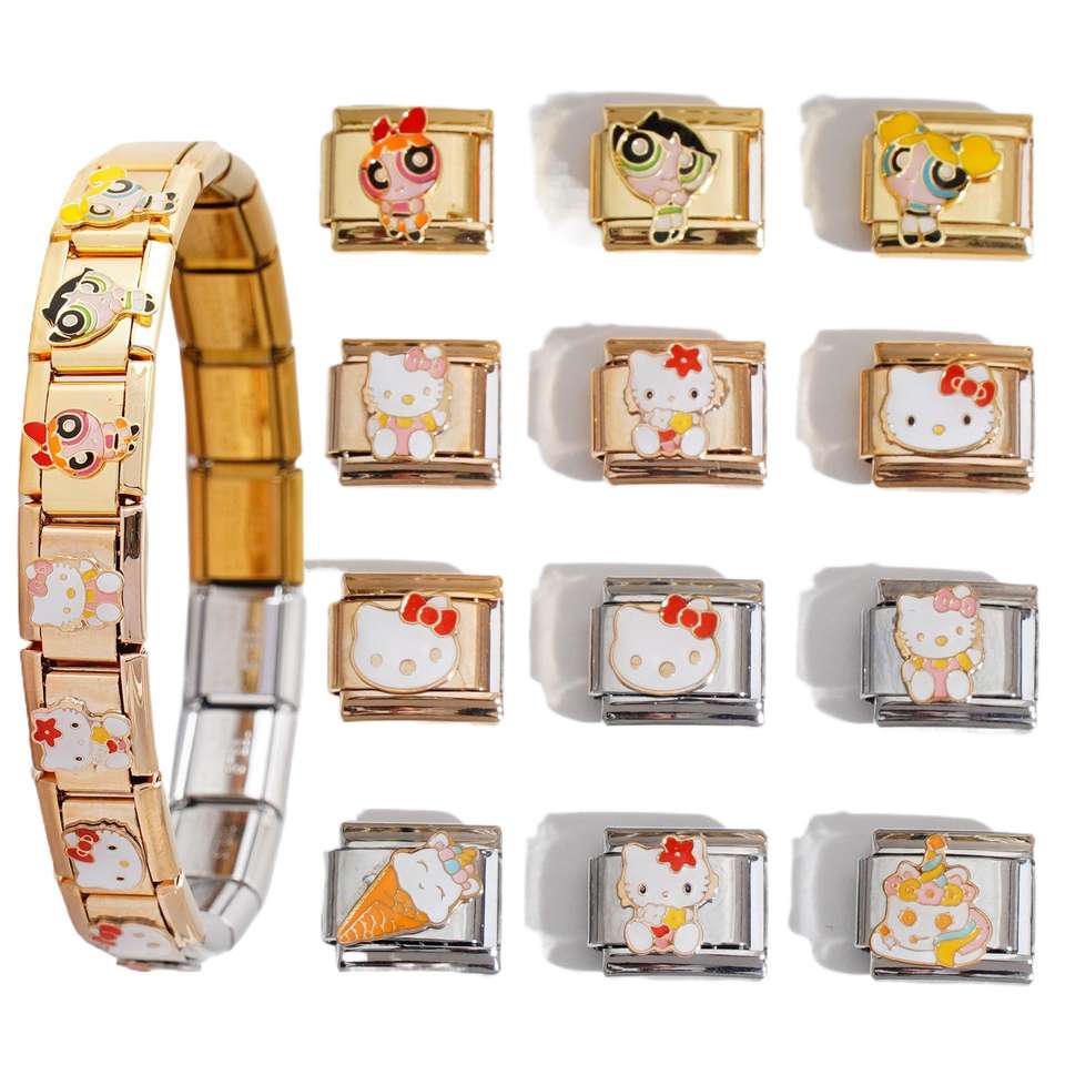 Cartoon Pattern Italian Modular Bracelet Titanium Steel Bezel Setting Unisex Gift Charm Bracelet