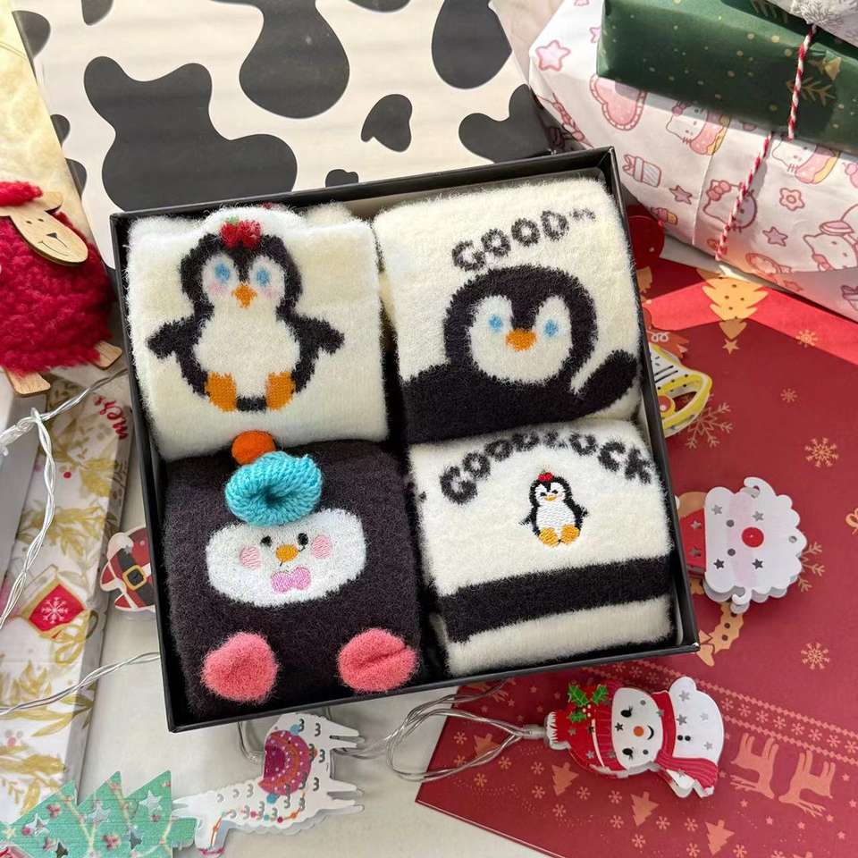 Chaussettes pingouin de dessin animé pour filles, en peluche douce, épaisses et chaudes, pour la maison, automne et hiver