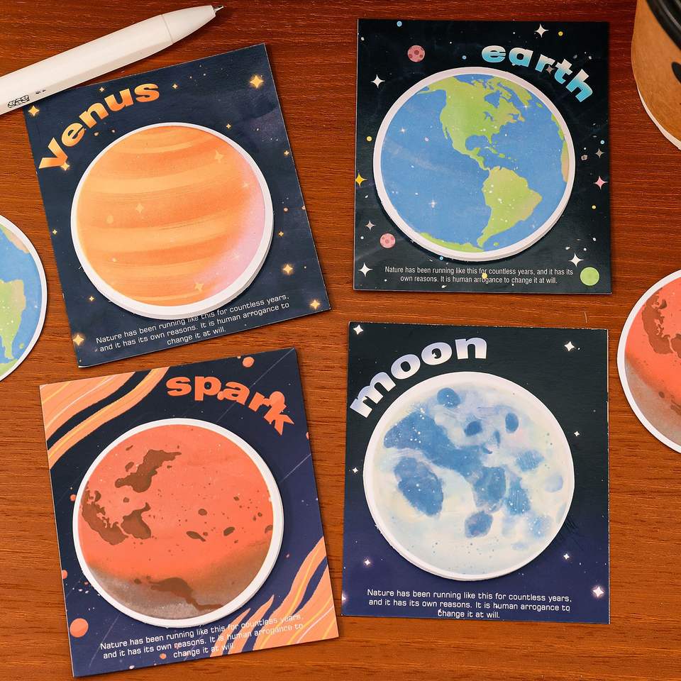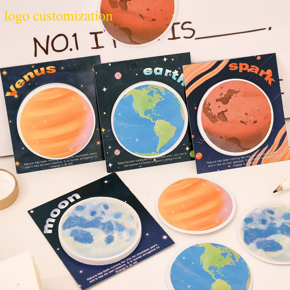Papier autocollant circulaire détachable multi-usage pour étudiants, papeterie, notes autocollantes Terre Lune, dessin animé Planète