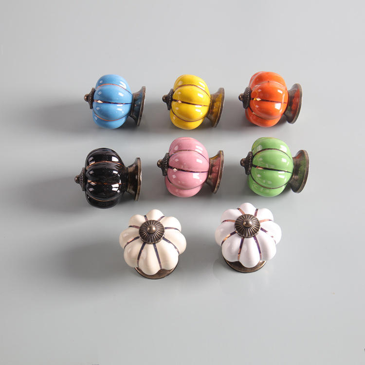 Poignée de meuble multifonctionnelle au design citrouille de dessin animé, colorée, pour armoire de chevet et porte, avec vis de fixation