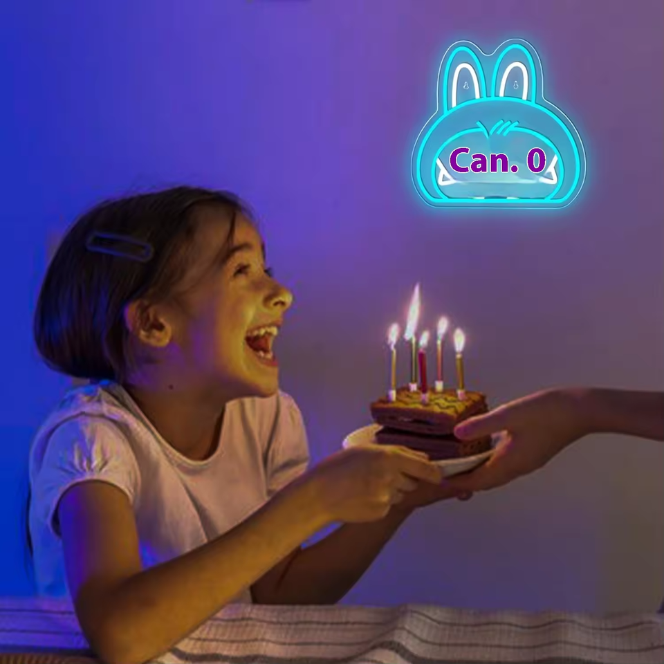 Enseigne néon LED IP65 Rab dessin animé, guirlandes lumineuses à intensité variable, décoration murale mignonne, accessoires de fête d'anniversaire, à suspendre pour chambre de fille