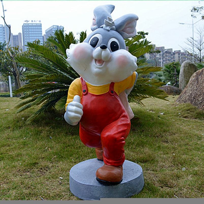 Statue de lapin de dessin animé, art populaire, sculpture de jardin en résine de fibre de verre faite à la main