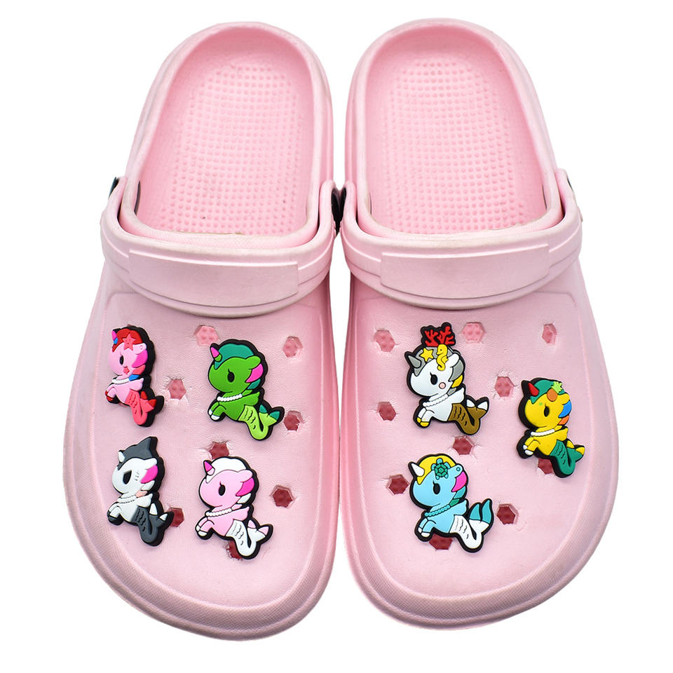 Breloques de chaussures 2D en PVC souple, série Licorne Arc-en-ciel de dessin animé, accessoires esthétiques pour chaussures, ornements