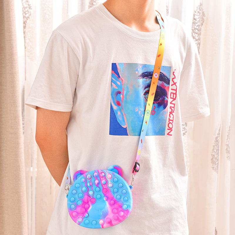 Porte-monnaie en silicone avec motif de dessin animé, anti-stress, mignon, push bubble, soulagement de l'anxiété, jouets pop it, sac à main