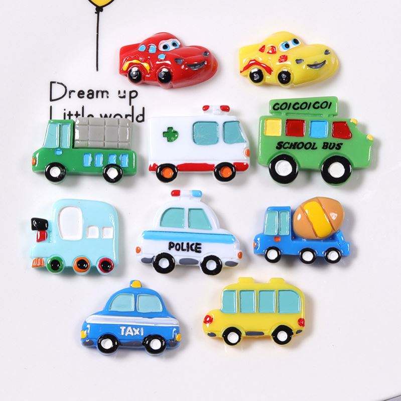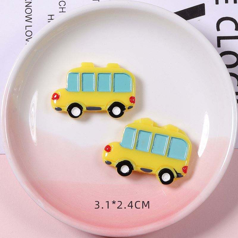 Breloques en résine de dessin animé autobus scolaire voiture de police ambulance camion bricolage décoration pour coque de téléphone