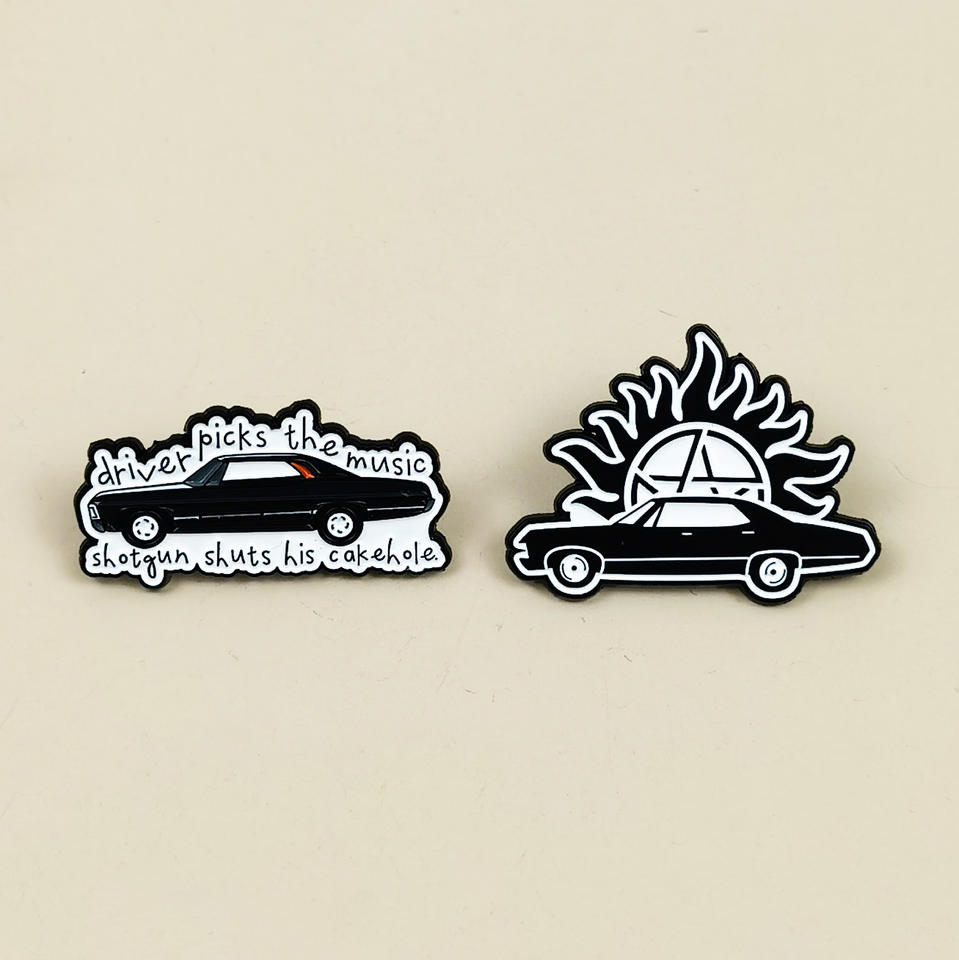 Broche de voiture rétro de style dessin animé, design personnalisé et élégant, accessoire lettre anglaise, badge métallique créatif pour vêtements et sacs à dos