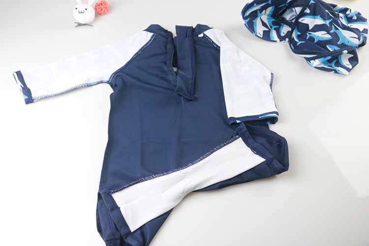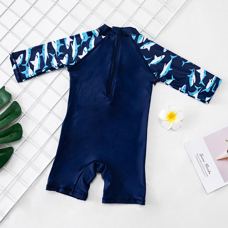 Combinaison de bain anti-UV à manches longues pour enfants, motif requin de dessin animé, avec chapeau