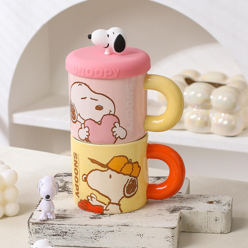 Tasse à café en céramique en forme d'animal mignon de dessin animé Snoopys avec couvercle tasse en céramique créative Snoopyed
