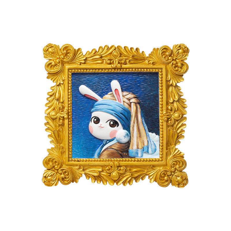 Style dessin animé peint à la main acrylique remplissage numérique peinture à l'huile jouer lapin trésor trois voies relief mignon lapin bricolage impression